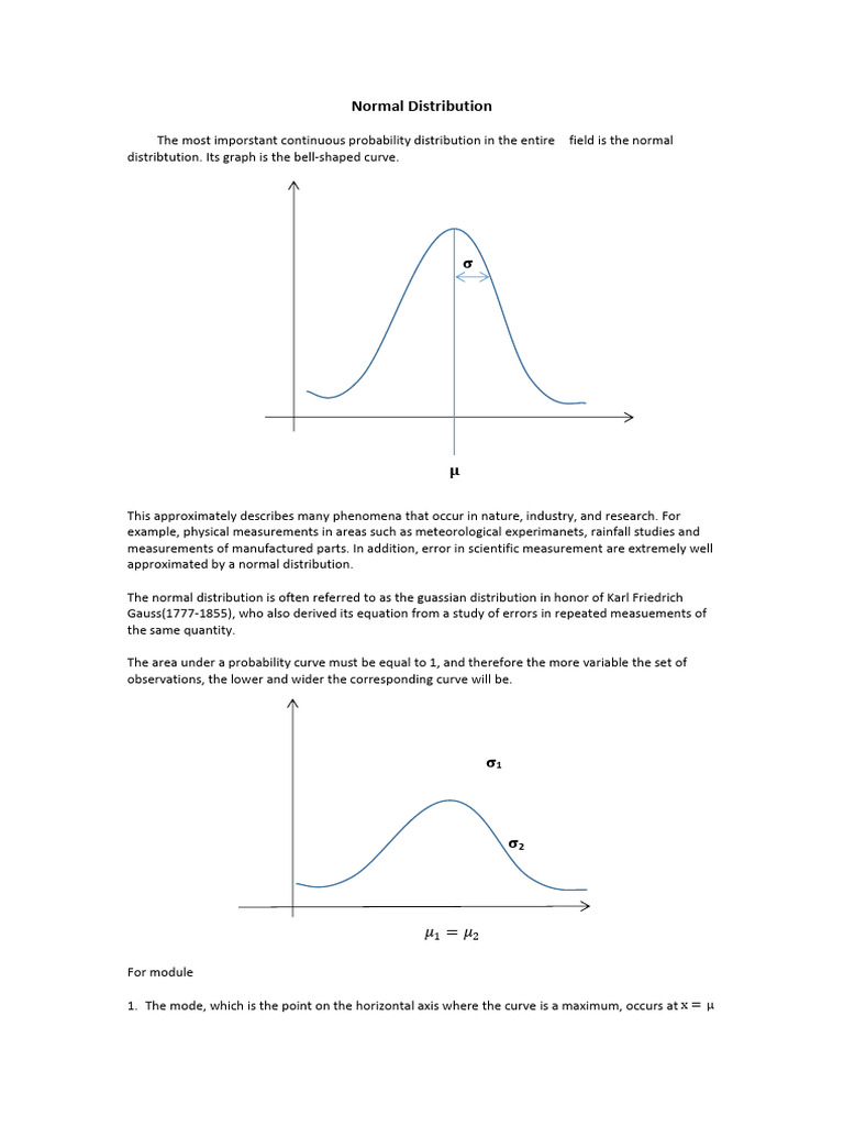 1. The mode, which is the point on the horizontal axis where the curve is a maximum, occurs at x = μ