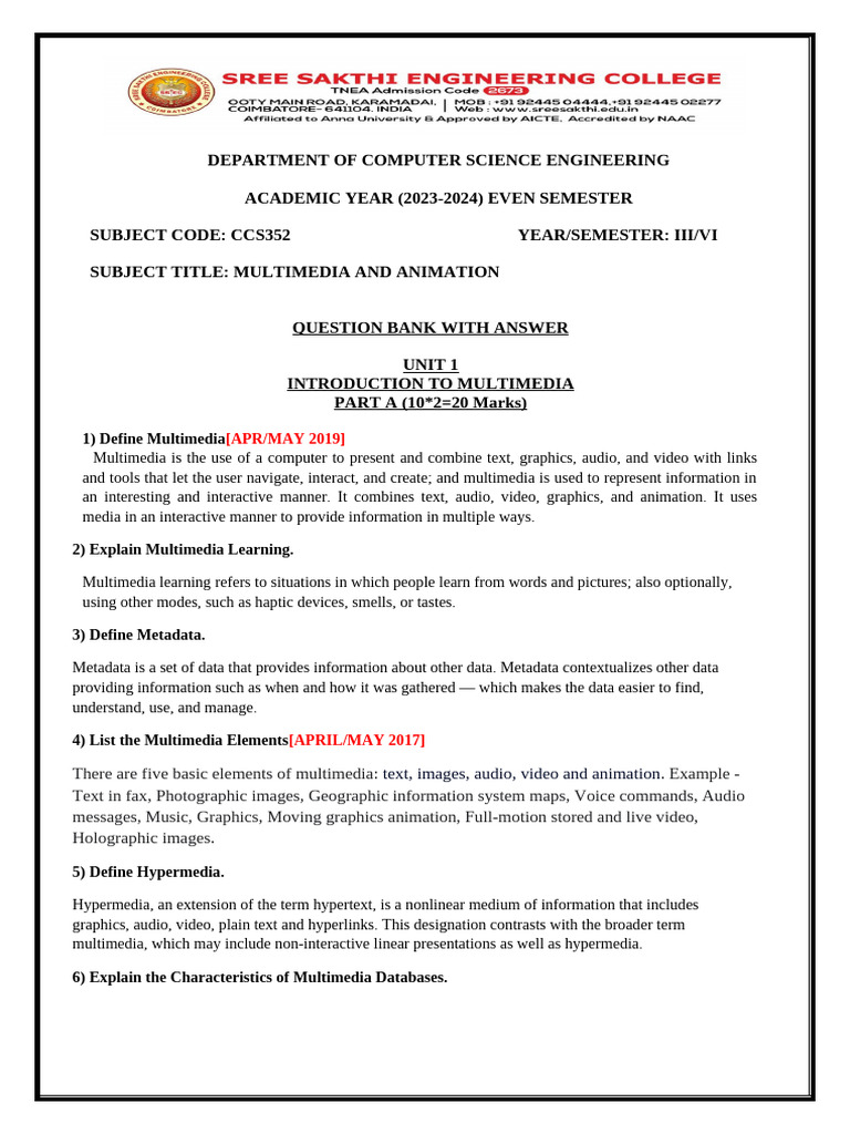 SUBJECT TITLE: MULTIMEDIA AND ANIMATION