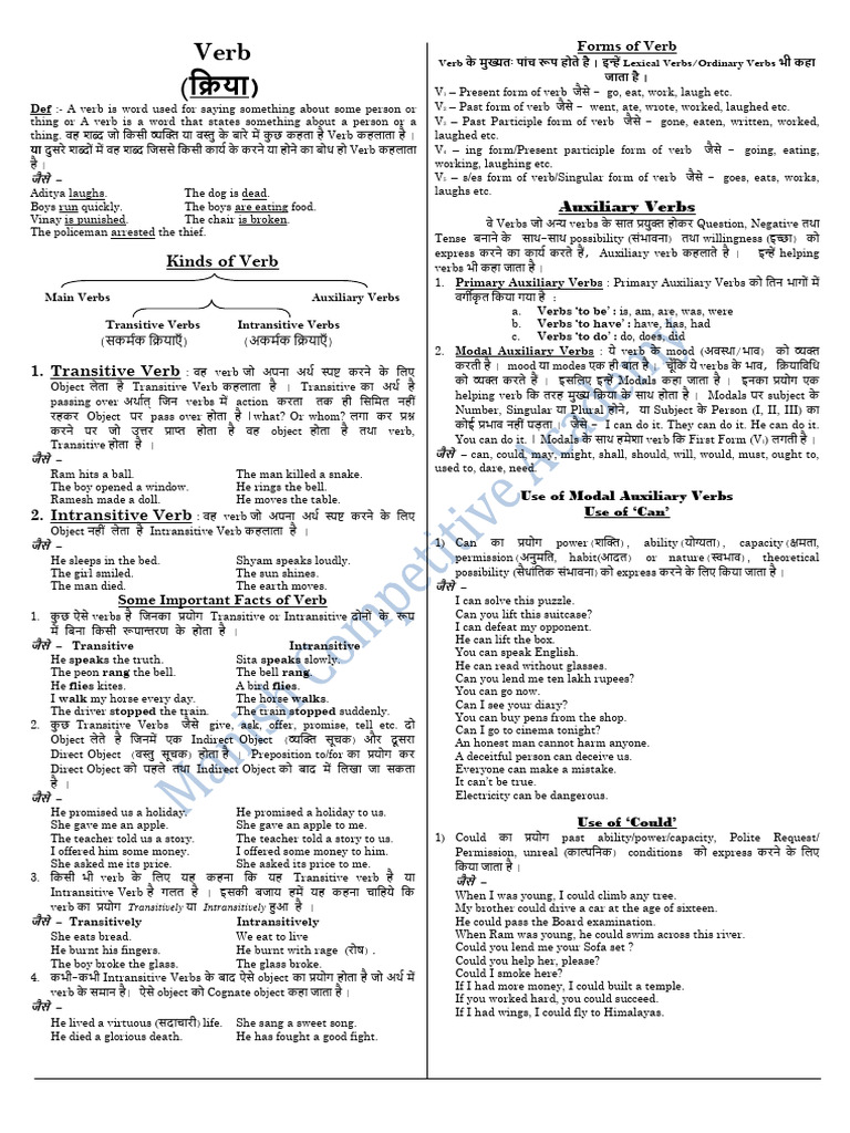 Def :- A verb is word used for saying something about some person or V2 – Past form of verb जैसे – went, ate, wrote, worked, laughed etc.