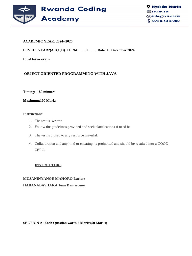 LEVEL: YEAR2(A,B,C,D) TERM: ……I…….. Date: 16 December 2024