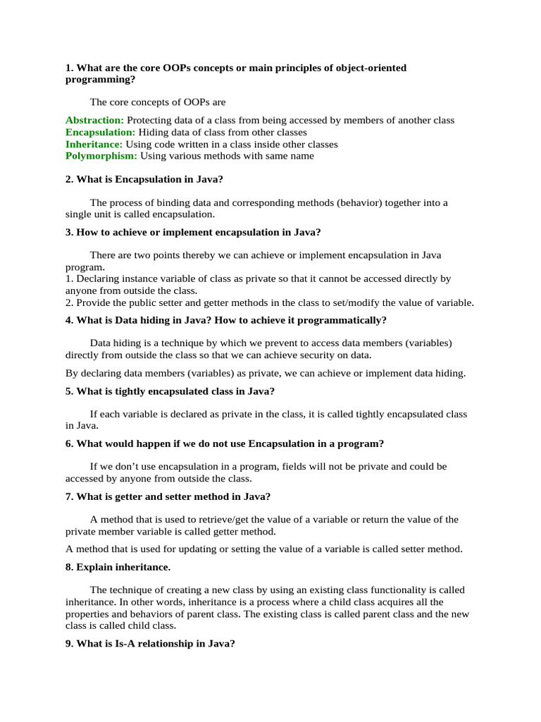 Core Java Interview Questions based on Class, Object, Data types, and Variables