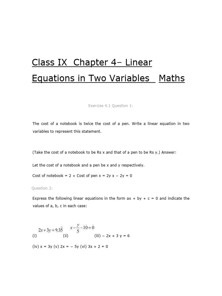Equations in Two Variables Maths