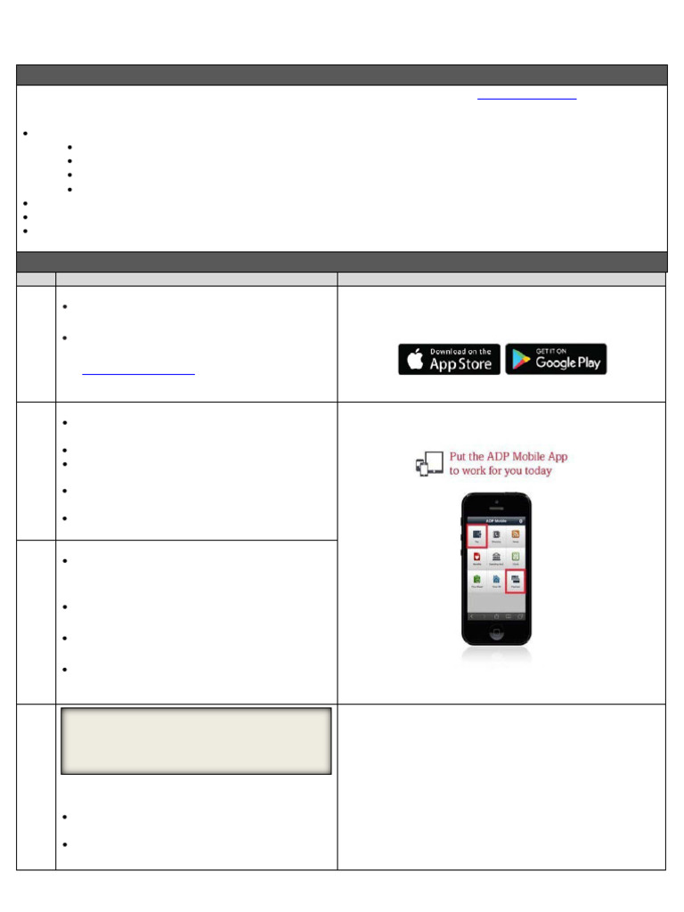 • Access Pay Statements and W -2 information by Download the free ADP Mobile Solutions App for your