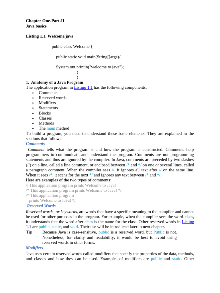 1.1 are public, static, and void. Their use will be introduced later in next chapter.