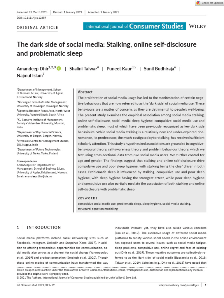 compulsive social media use, problematic sleep, sleep hygiene, social media stalking,