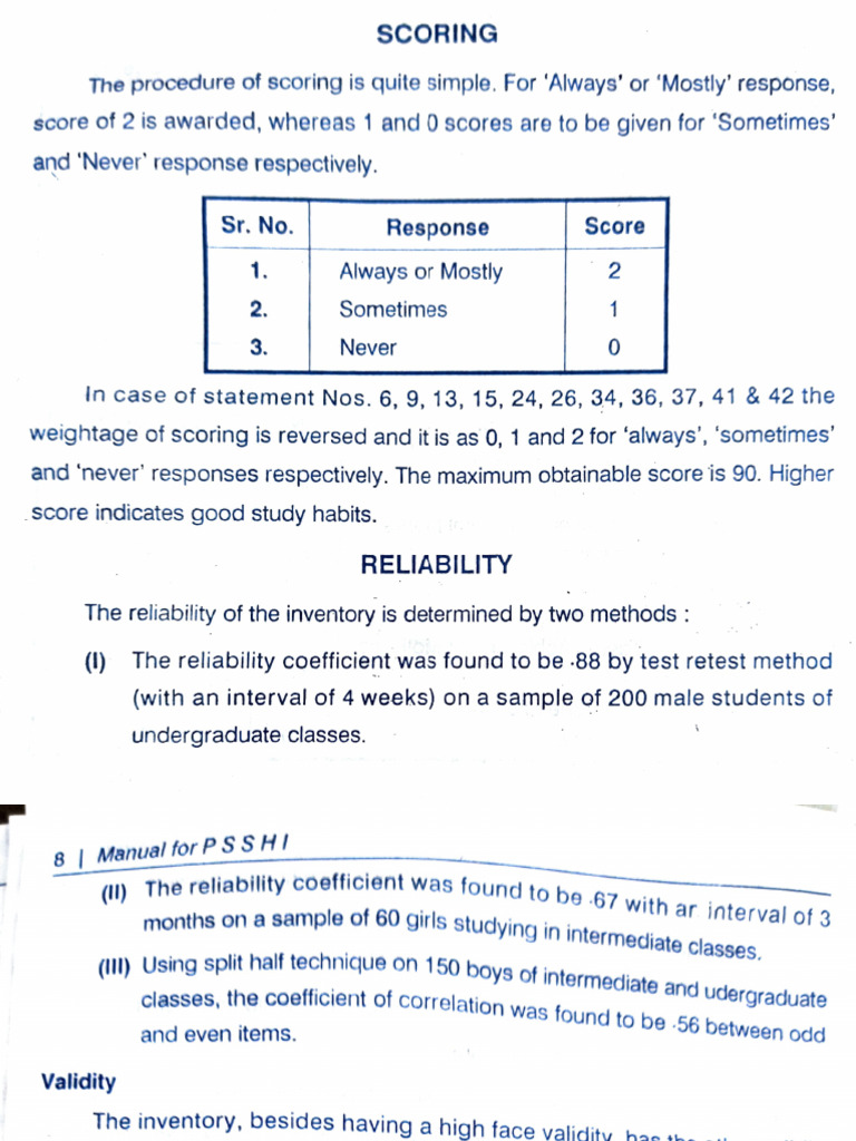 1. Study Habit Inventory