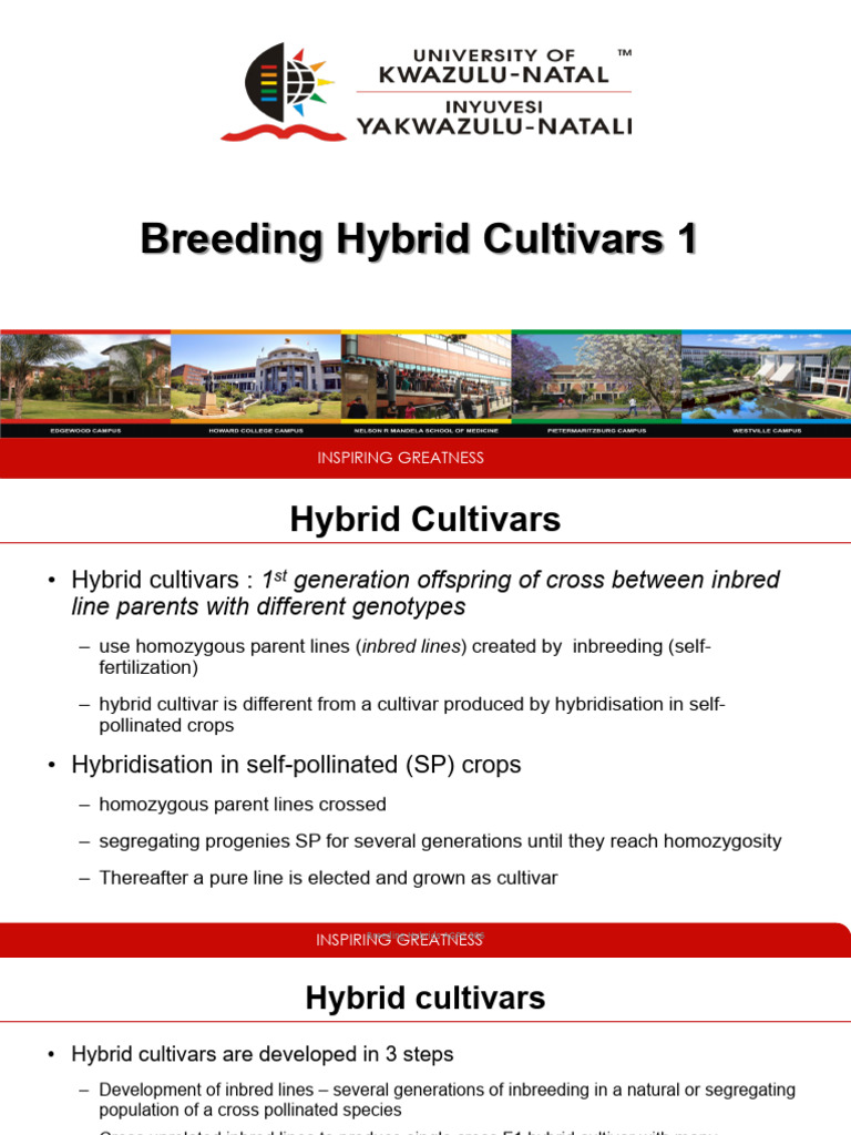 • Hybrid cultivars : 1st generation offspring of cross between inbred