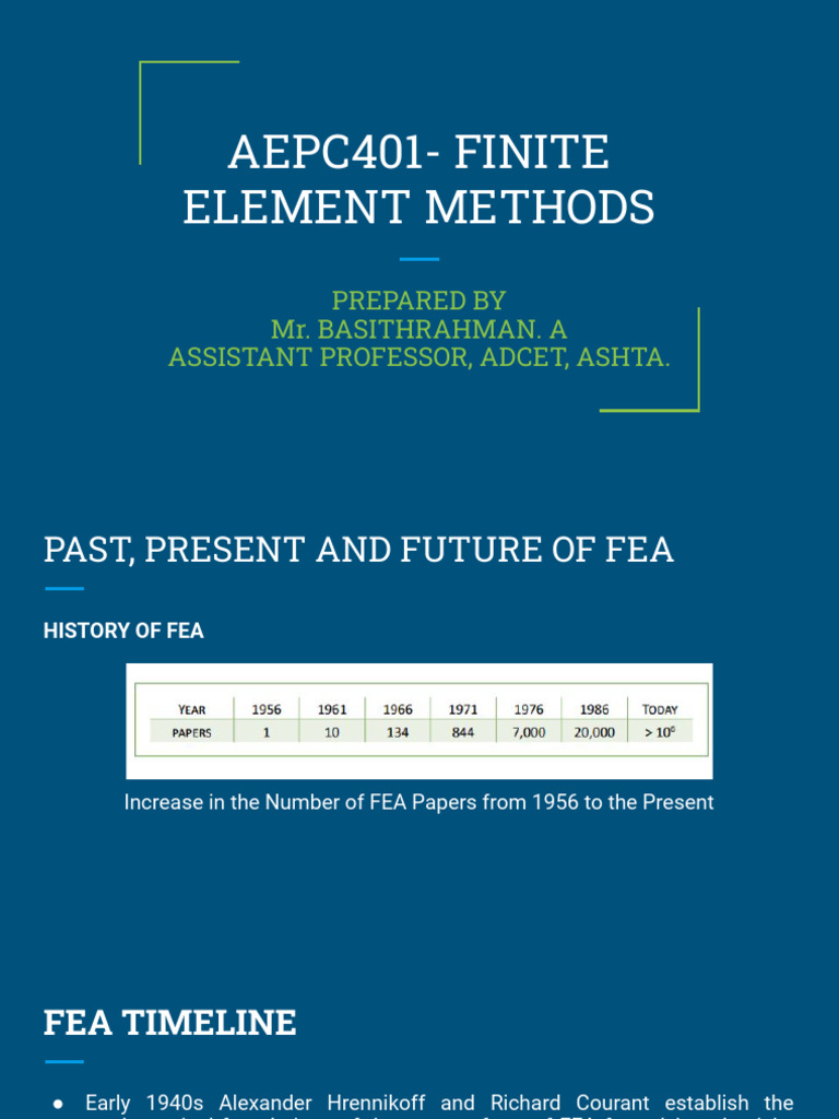 first articles concerning the application of FEA, is published by M. J. Turner,