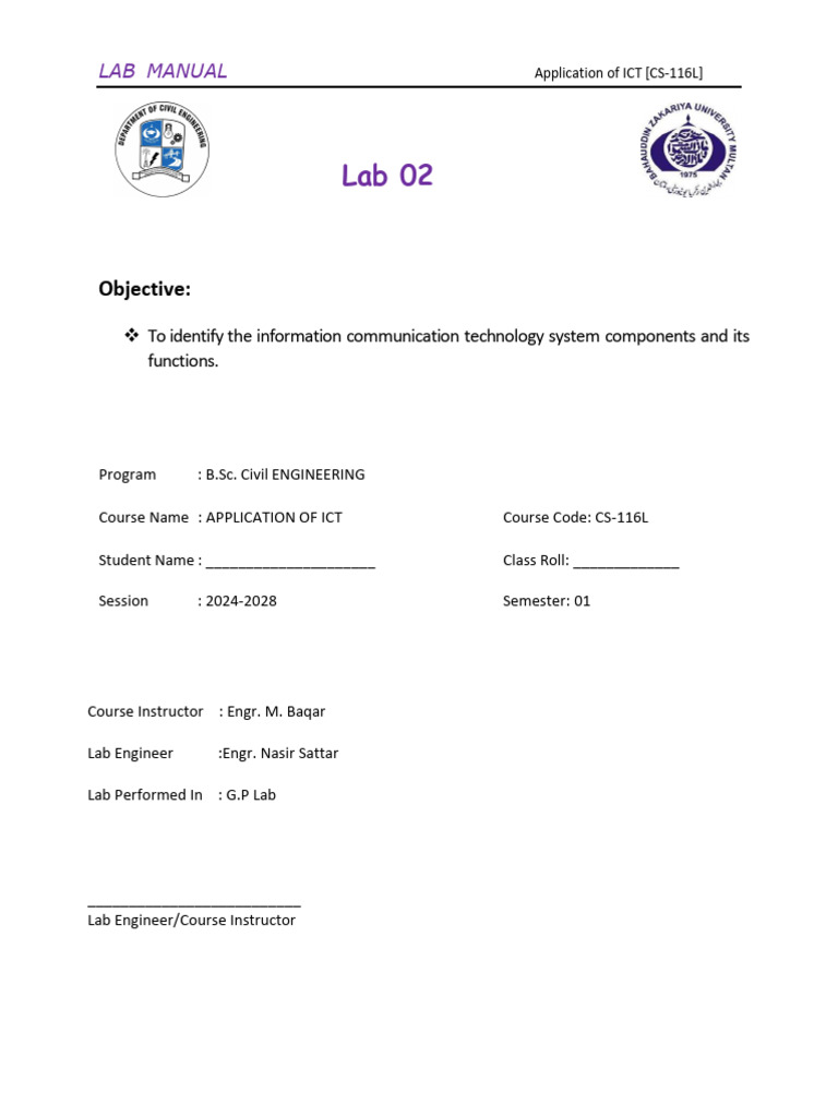 Course Name : APPLICATION OF ICT Course Code: CS-116L