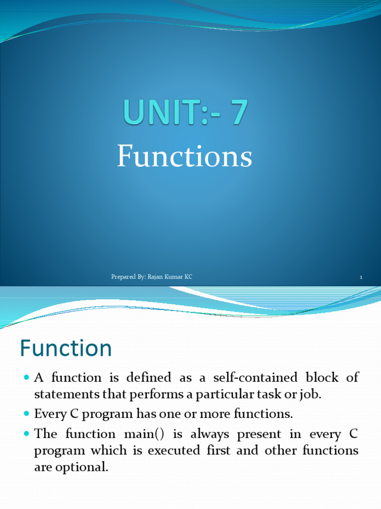 Unit 7 Functions