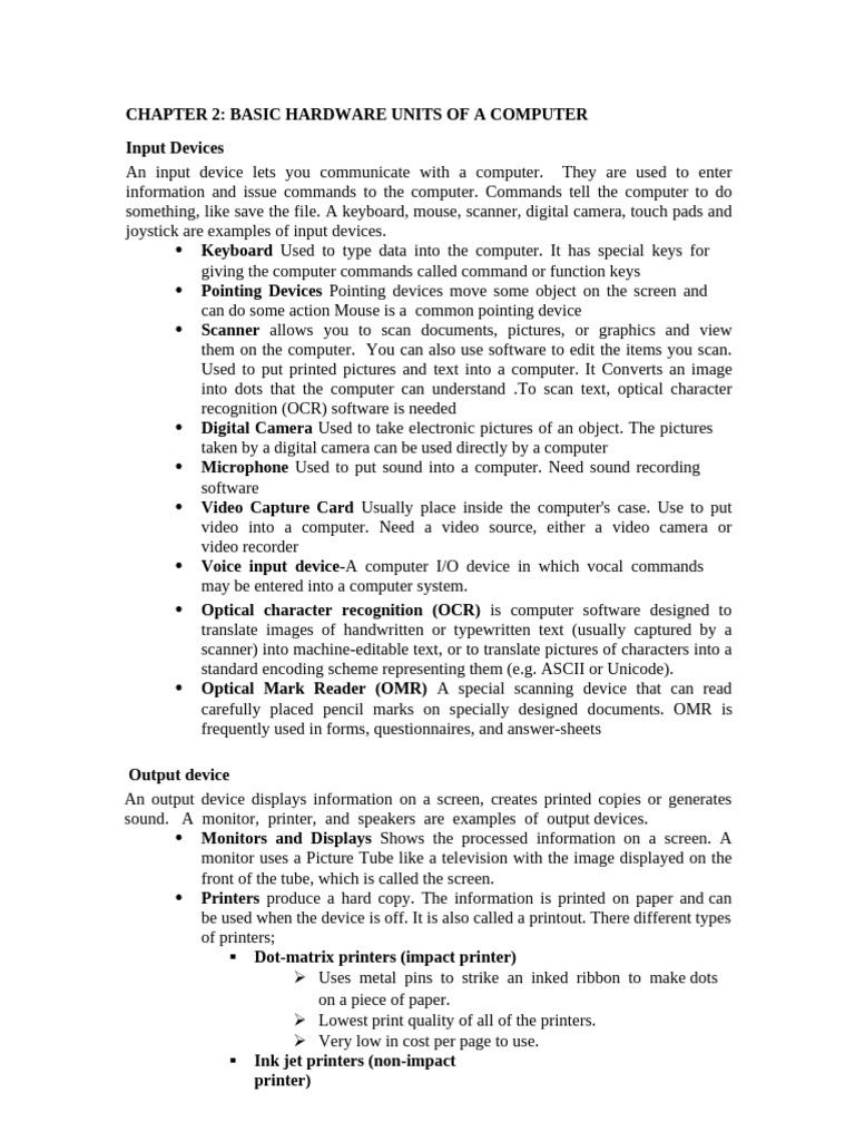 CHAPTER 2: BASIC HARDWARE UNITS OF A COMPUTER