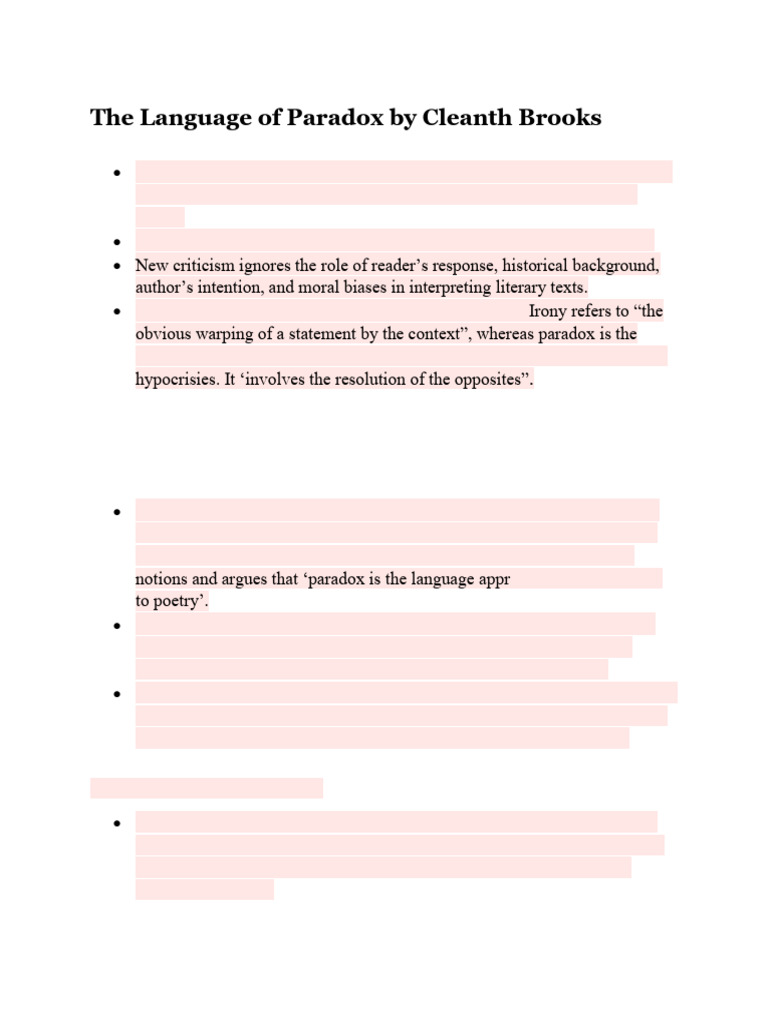 • Irony and paradox are two key words in new criticism. Irony refers to “the