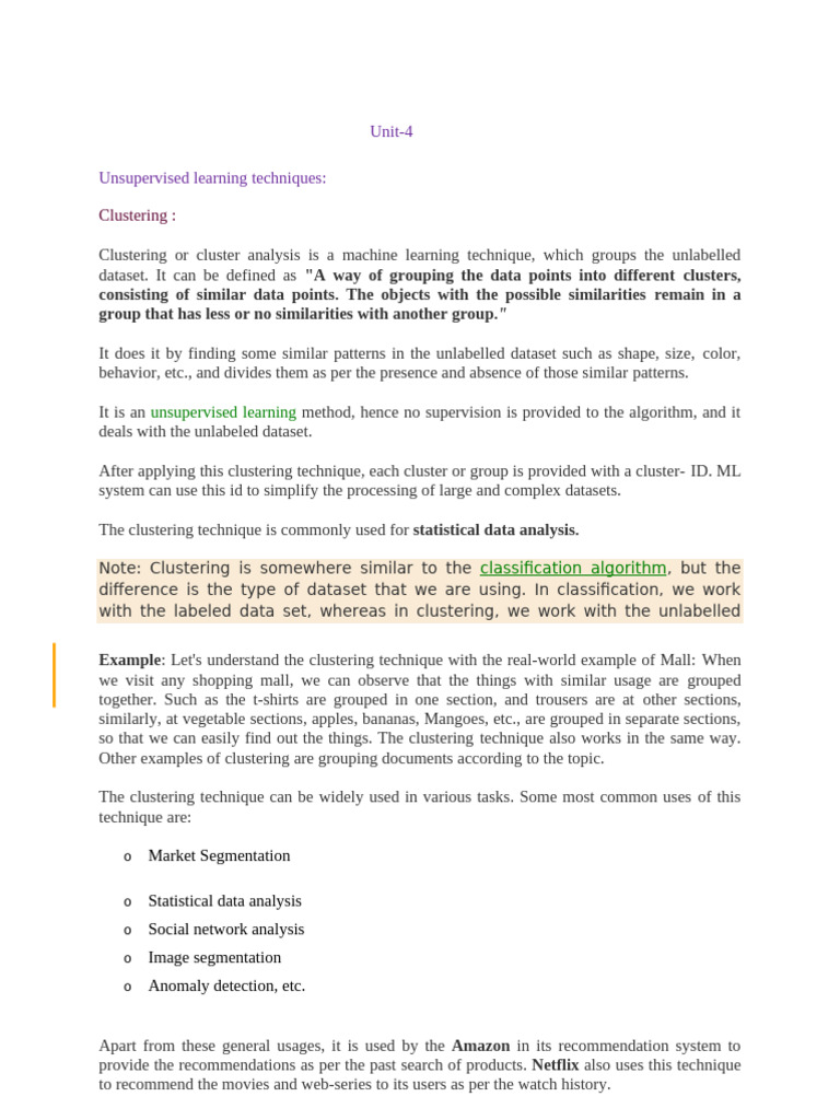 Unit - 4 (ML)
