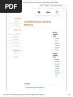 The motion of the pendulum on a cart can be described by (M + m) ml cos + ml sin 2 = u y ml cos y + ml2 + mlg sin = 0 where M is the mass of the cart, m is the pendulum mass, l is distance from cart to pendulum mass, and g is the gravitational acceleration constant. The variables y and are the cart displacement and the pendulum angle, respectively. Solving for and y yields y = (u ml sin 2 mg sin cos )/(M + m sin 2 ) = (cos u ml sin cos 2 (M + m)g sin cos )/(M l + ml sin 2 ) Simulink model. Top function block (u[1]-m*l*sin(u[3])*u[2]*u[2]-m*g*sin(u[3])*cos(u[3]))/(M+m*sin(u[3])2 ) Bottom function block (cos(u[3])*u[1]-m*l*sin(u[3])*cos(u[3])*u[2]*u[2]-(M+m)*g*sin(u[3])) /(M*l+m*l*sin(u[3])2 )