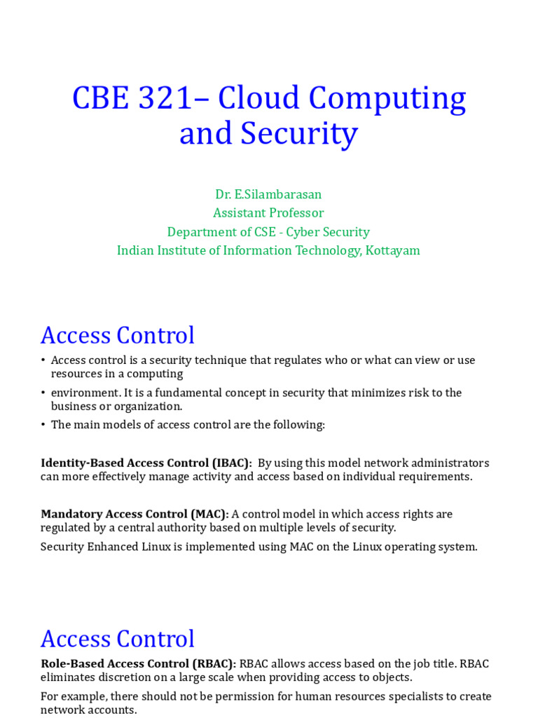 • Access control is a security technique that regulates who or what can view or use