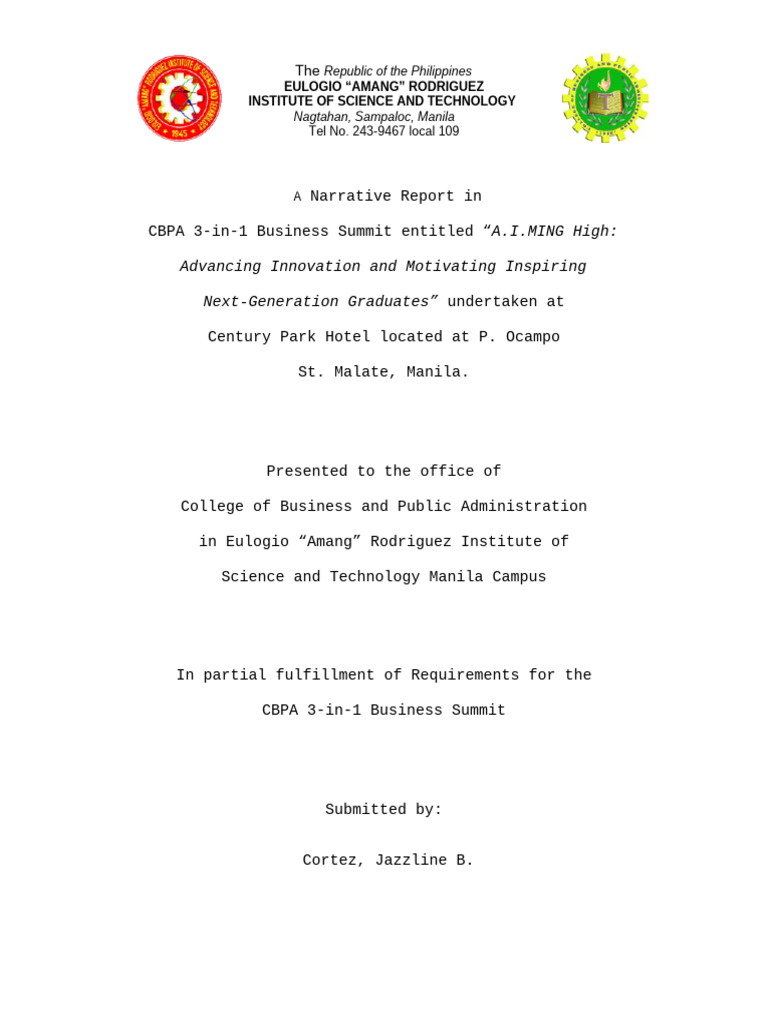 CBPA 3-in-1 Business Summit entitled “A.I.MING High:
