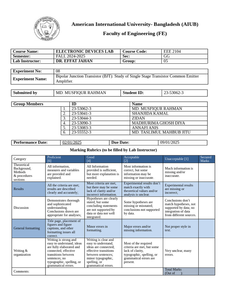 a) American International University–Bangladesh (AIUB) Electronic Devices Lab
