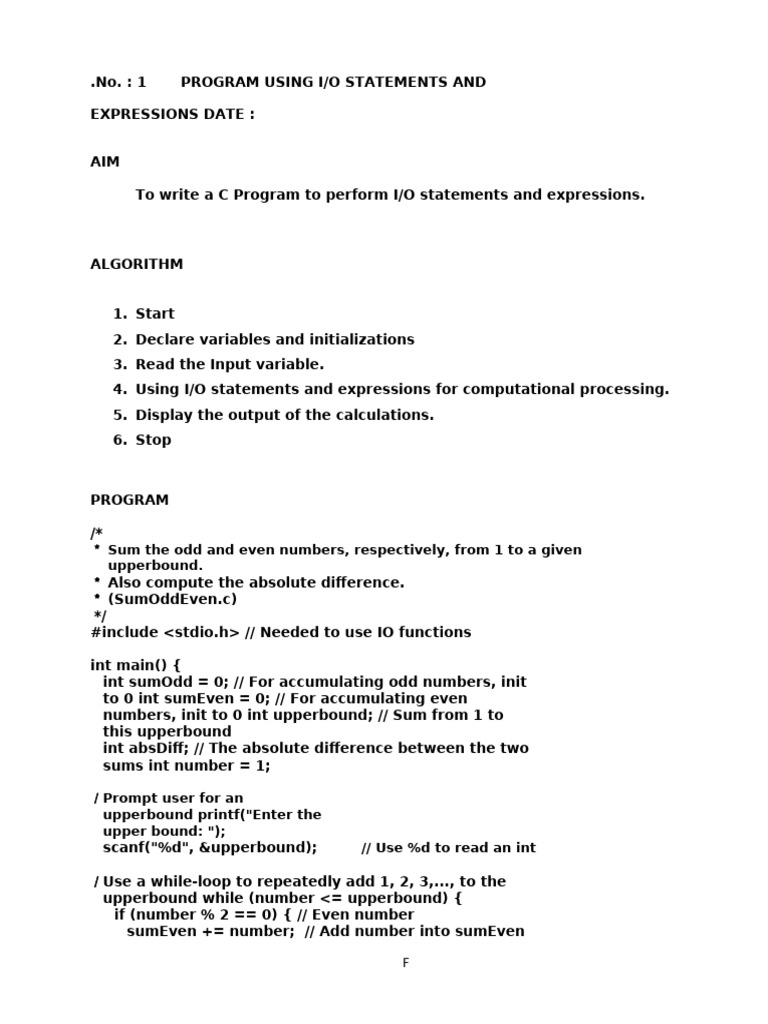 4. Using I/O statements and expressions for computational processing.