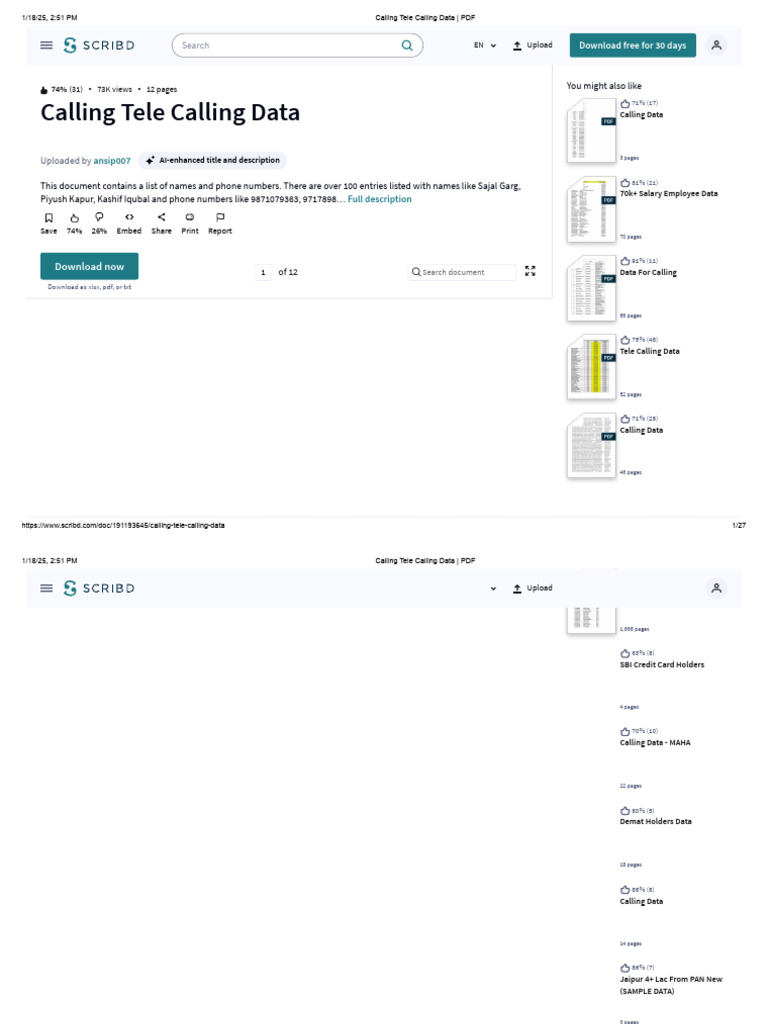 1/18/25, 2:51 PM Calling Tele Calling Data | PDF