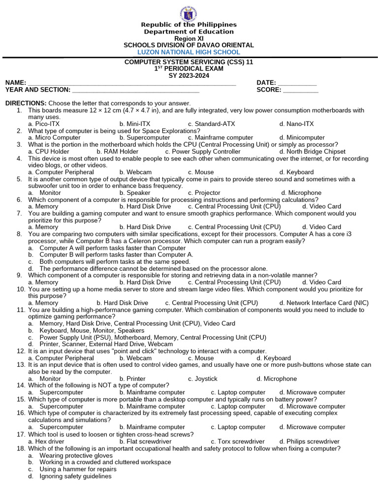 COMPUTER SYSTEM SERVICING (CSS) 11
