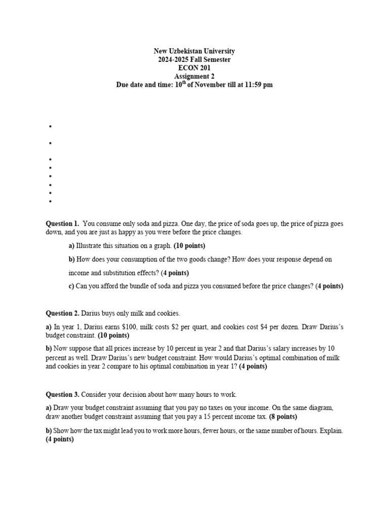 Question 1. You consume only soda and pizza. One day, the price of soda goes up, the price of pizza goes