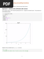 2. Setting up the range: Here we discuss how to set the range once the domain for the 2D plot is dened. (a) We assume that the domain of the plot is already set as a vector, x. To plot y = x2 we need to set up another vector, y , which contains the values of the x vector, each squared. So we type: Recall that we must include the . here, since we wish to square each component of x (and x2 does not make sense for a vector x) (b) This same idea holds regardless of the function you wish to plot, but you need to be careful with componentwise sin x will be sin(x)./x, and so on. arithmetic. Recall that x3 will be x.^3 , something like