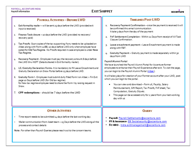 process and contact details • Fe HRO - India.exitmanagement@accenture.com