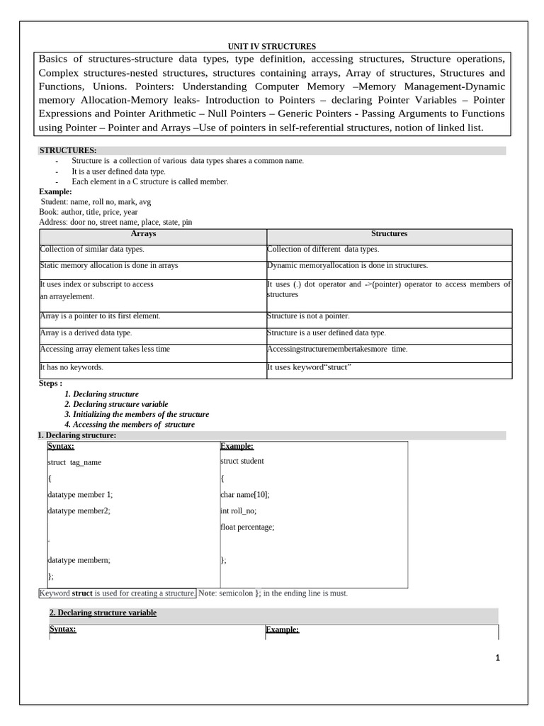 Complex structures-nested structures, structures containing arrays, Array of structures, Structures and