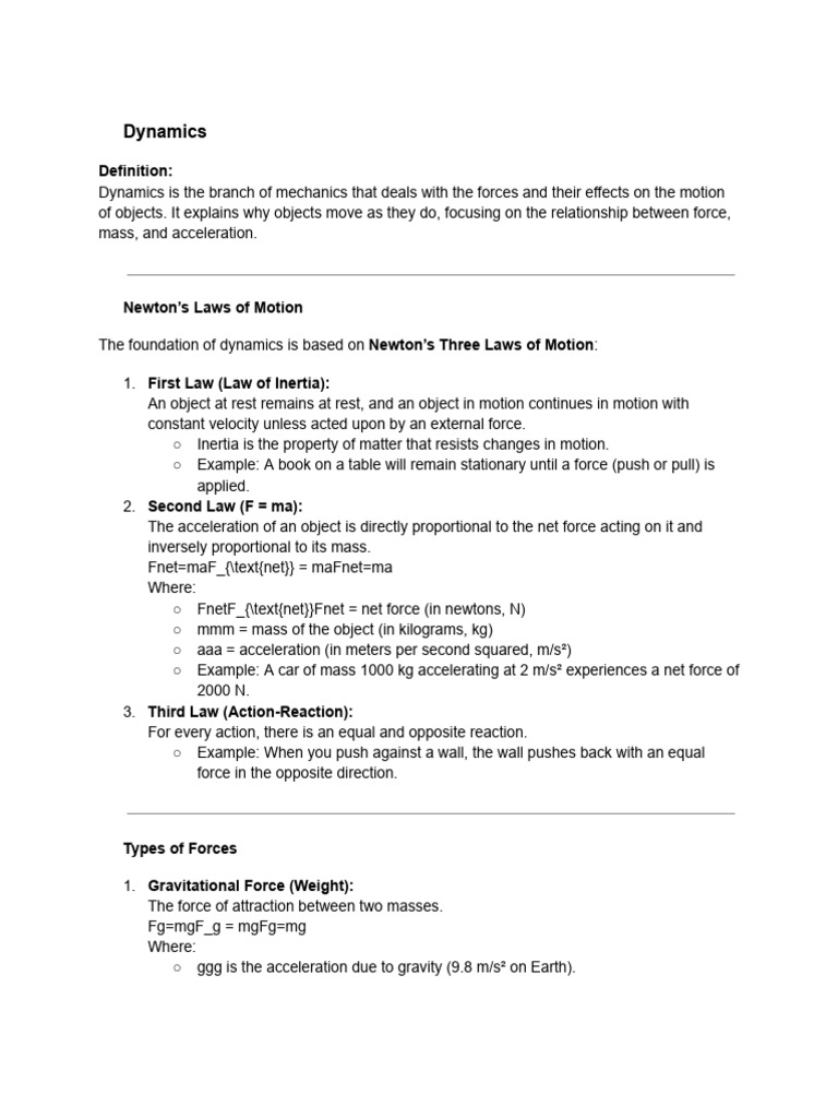 Dynamics is the branch of mechanics that deals with the forces and their effects on the motion