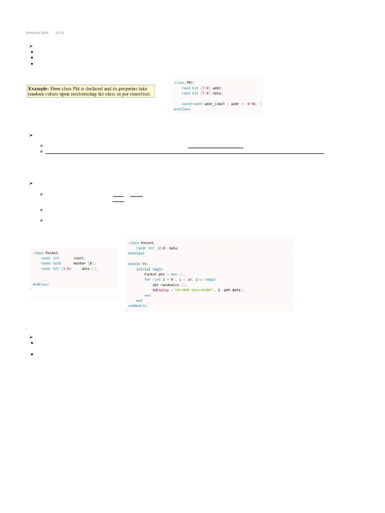○ variables declared random using rand or randc keyword. the function randomize() (randomize(v1,v2) randomizes variable v1 and v2) is invoked as part of the