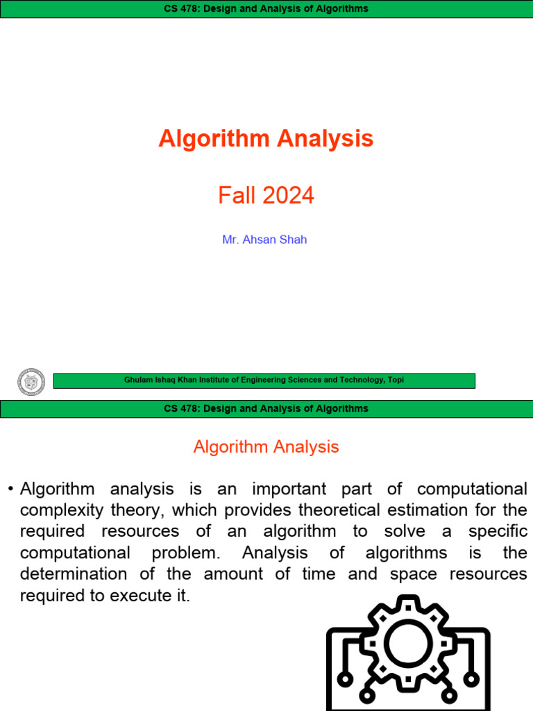 computational problem. Analysis of algorithms is the