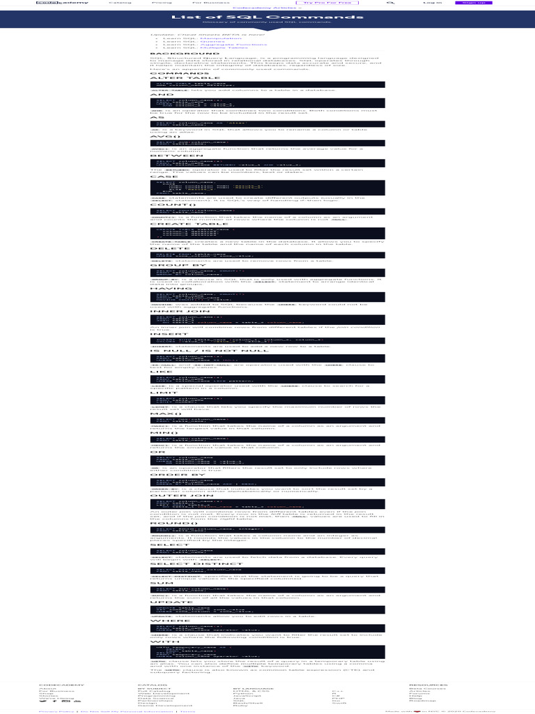 List of SQL Commands