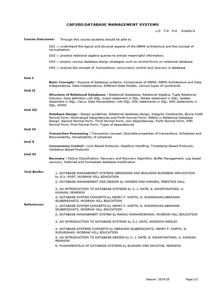 CAP200:DATABASE MANAGEMENT SYSTEMS