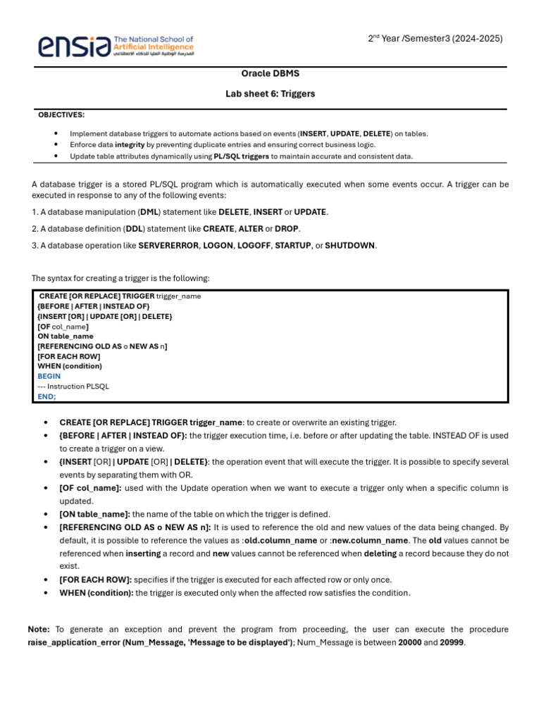 Lab sheet 6: Triggers