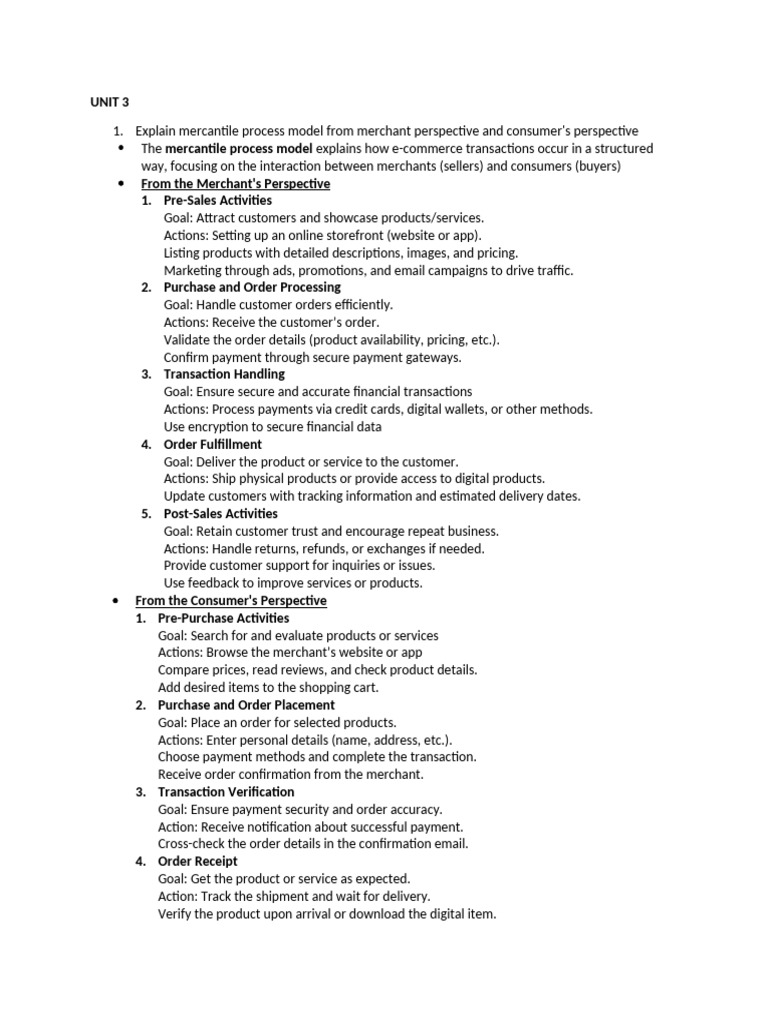 1. Explain mercantile process model from merchant perspective and consumer's perspective