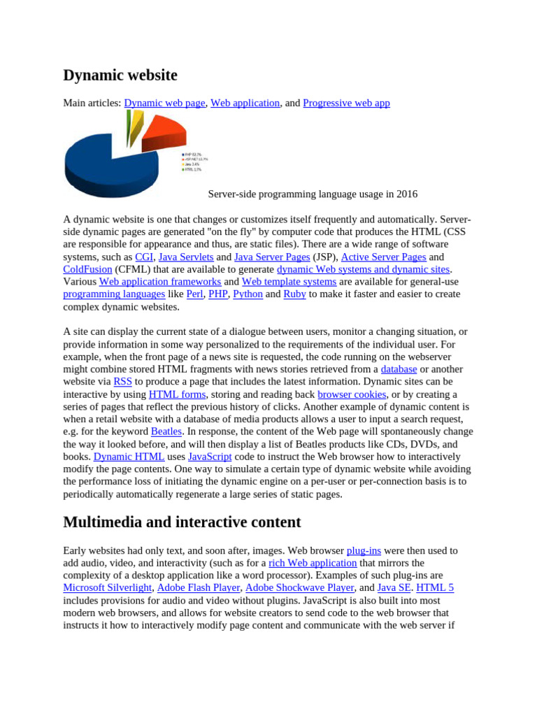 A dynamic website is one that changes or customizes itself frequently and automatically. Server-
