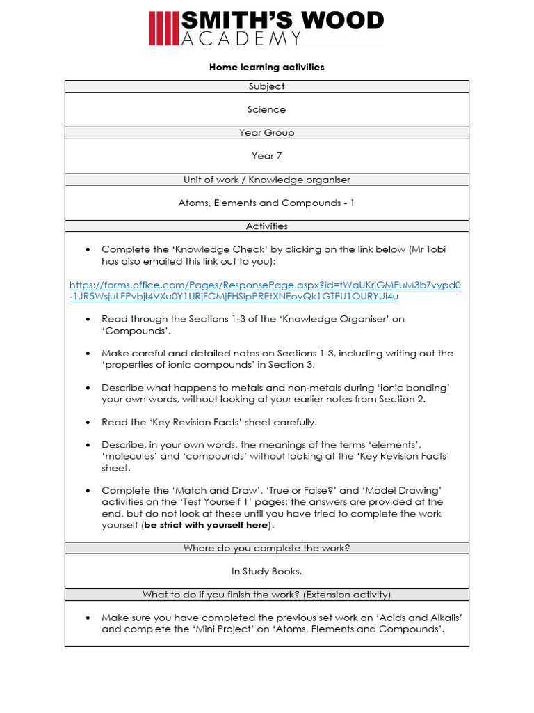 • Complete the ‘Knowledge Check’ by clicking on the link below (Mr Tobi