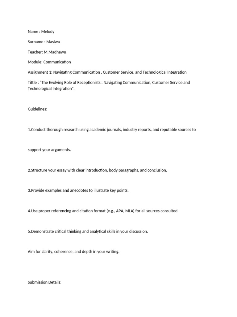 Assignment 1: Navigating Communication , Customer Service, and Technological Integration