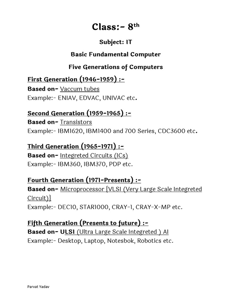 Five Generations of Computers