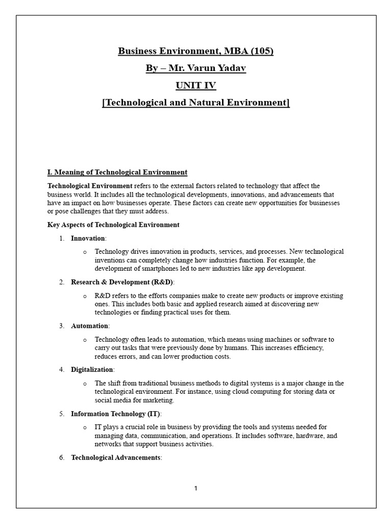 I. Meaning of Technological Environment