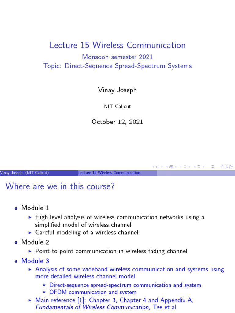 Vinay Joseph (NIT Calicut) Lecture 15 Wireless Communication