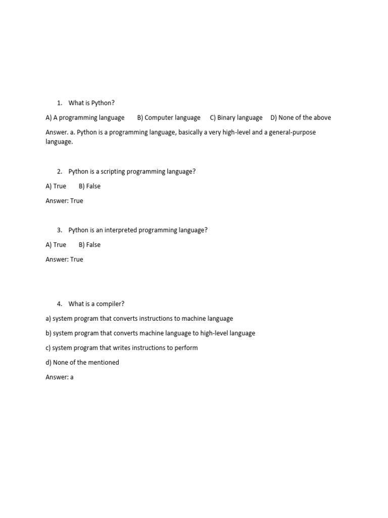 Answer. a. Python is a programming language, basically a very high-level and a general-purpose