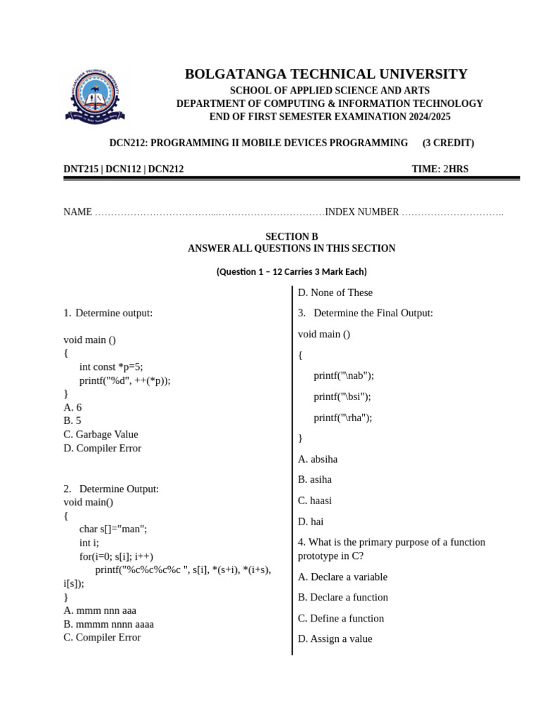 DNT215 | DCN112 | DCN212 TIME: 2HRS