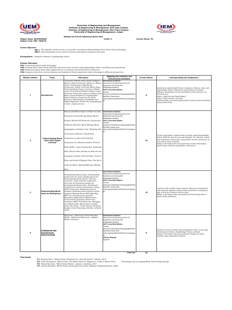 Subject Name: BLOCKCHAIN Credit: 3 Lecture Hours: 32