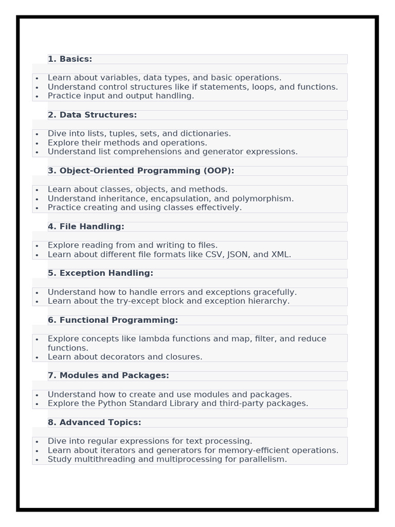 Understand control structures like if statements, loops, and functions.