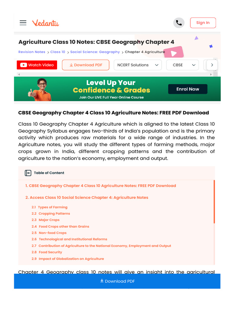 Download PDF of Agriculture Class 10 Notes: CBSE Geography Chapter 4