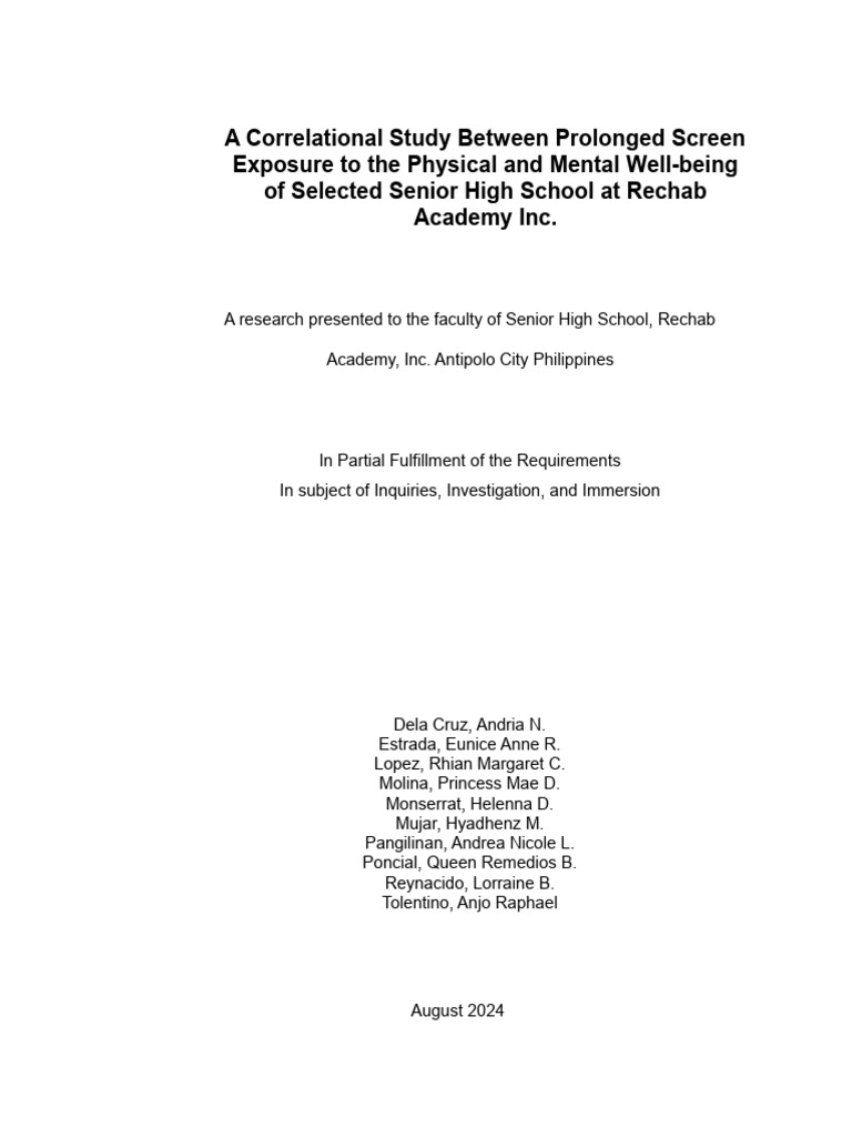 A Correlational Study Between Prolonged Screen