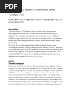 excessive screen time and negative mental health consequences. It emphasizes how