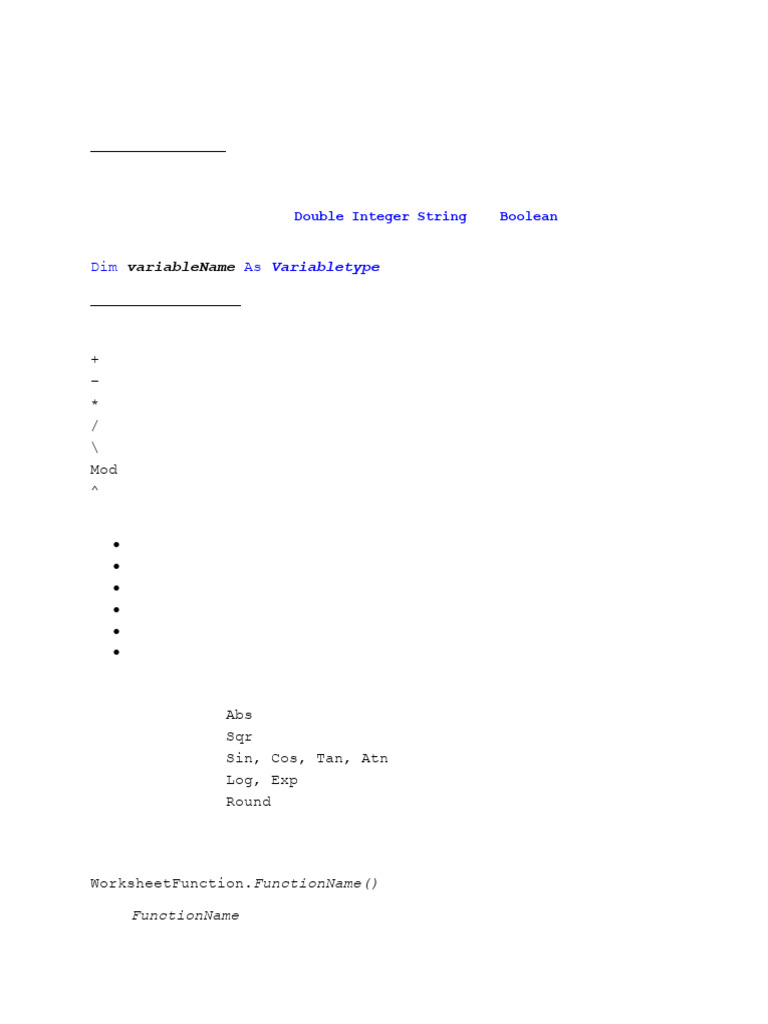 variables that you will likely use: Double, Integer, String, and Boolean.