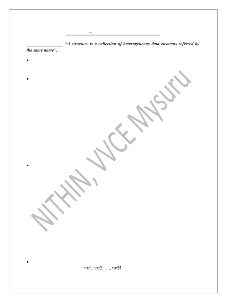 STRUCTURES: “A structure is a collection of heterogeneous data elements referred by